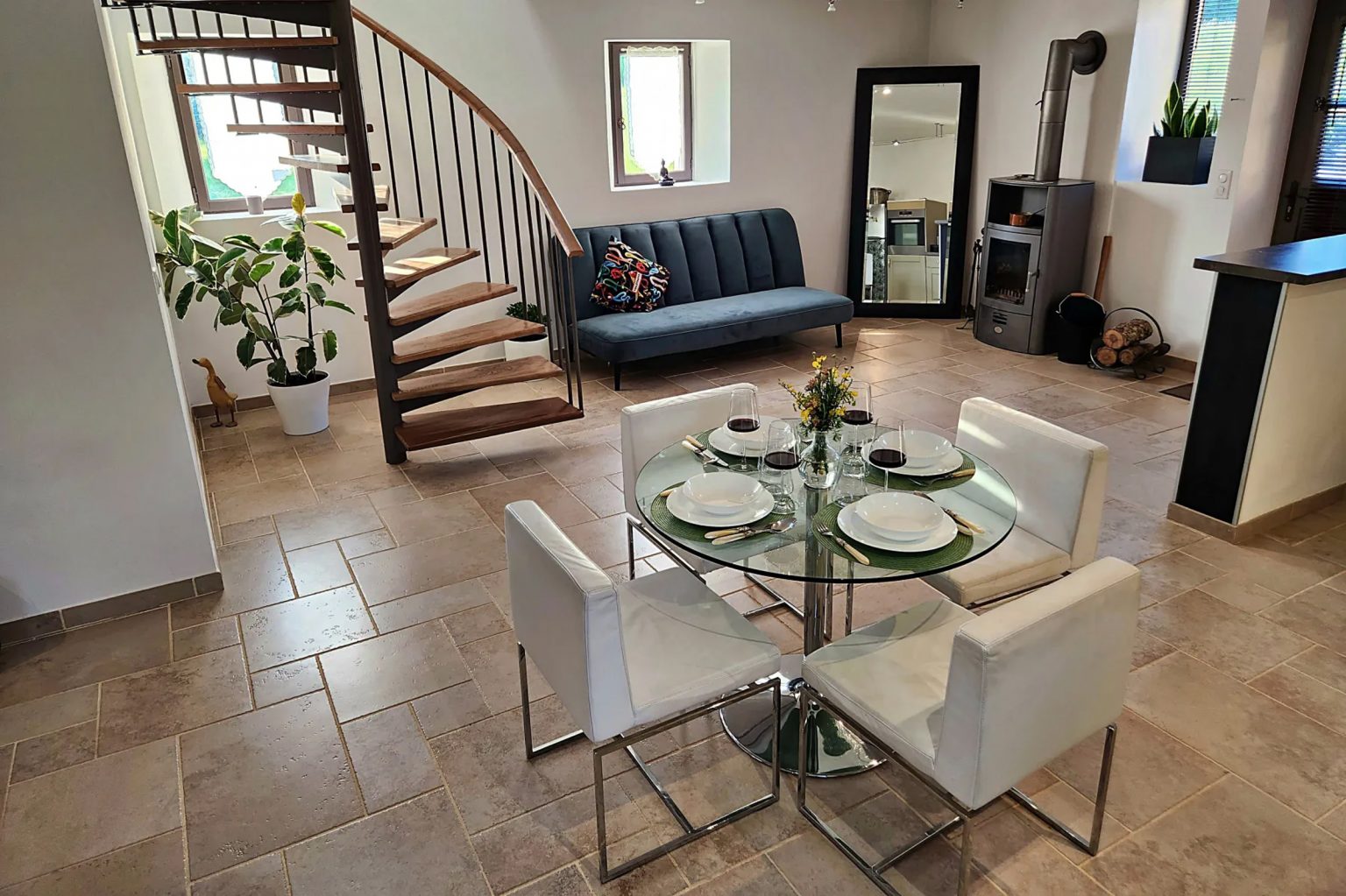 A beautifully renovated detached 2-bedroom holiday home in the heart of the Dordogne, blending rustic charm with modern comfort. Ideal for families or small groups of up to 4 guests, it features thick stone walls, exposed beams, a cosy wood burner, and luxurious interiors.