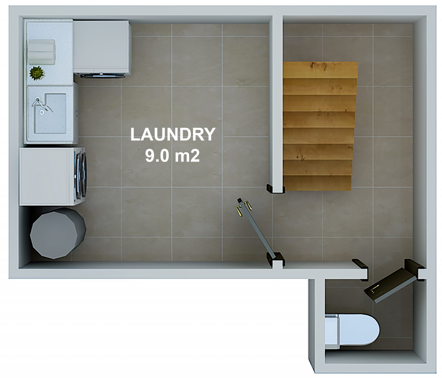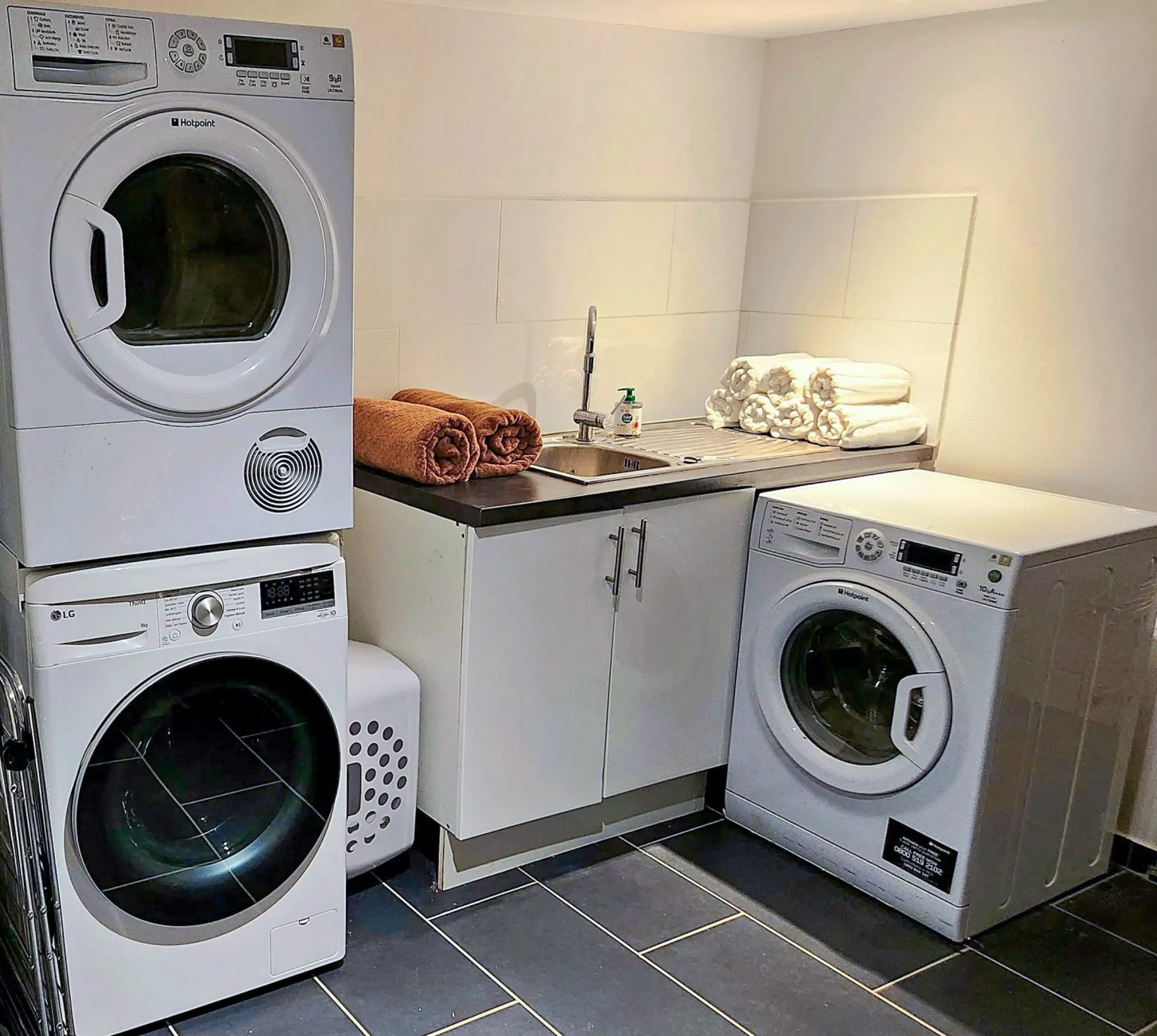 Separate laundry room with a washer, dryer and sink, plus an additional wc.