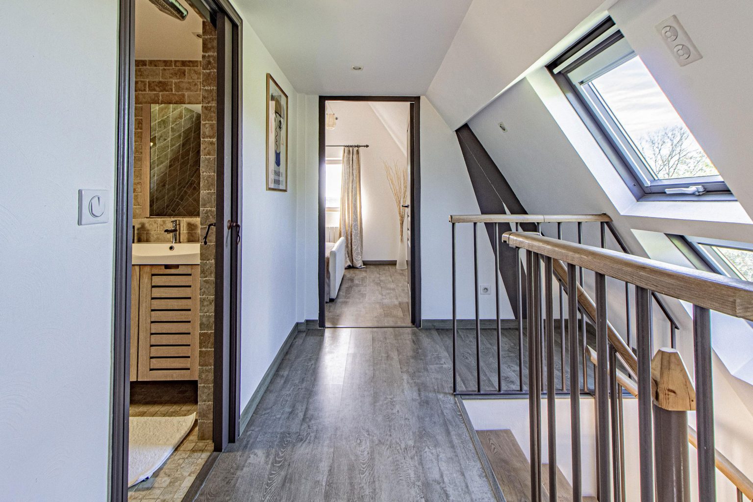 Bathroom: The upper-floor bathroom serves the 2 bedrooms with a modern walk-in shower. It features a spacious sink and wc, ensuring a comfortable and convenient experience. Good-quality finishes and thoughtful design elements create a pleasant atmosphere, enhancing your stay. There is a further second wc is downstairs in the laundry room.